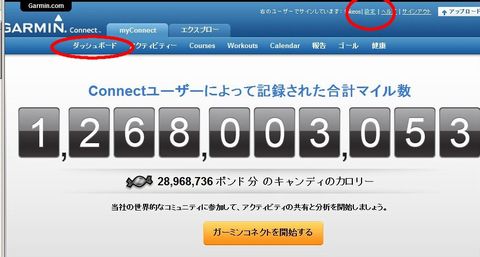 ![]() http://connect.garmin.com/にアクセスします。 最初はアカウントを作成します 次回からは、ダッシュボードを見ましょう。 日本語に設定するのは上部の「setting」からです。 | ![]() 「setting」画面で日本語およびメートルを選択すれば 日本語表示、ログの記録もメートルになります(デフォルトはマイル) |